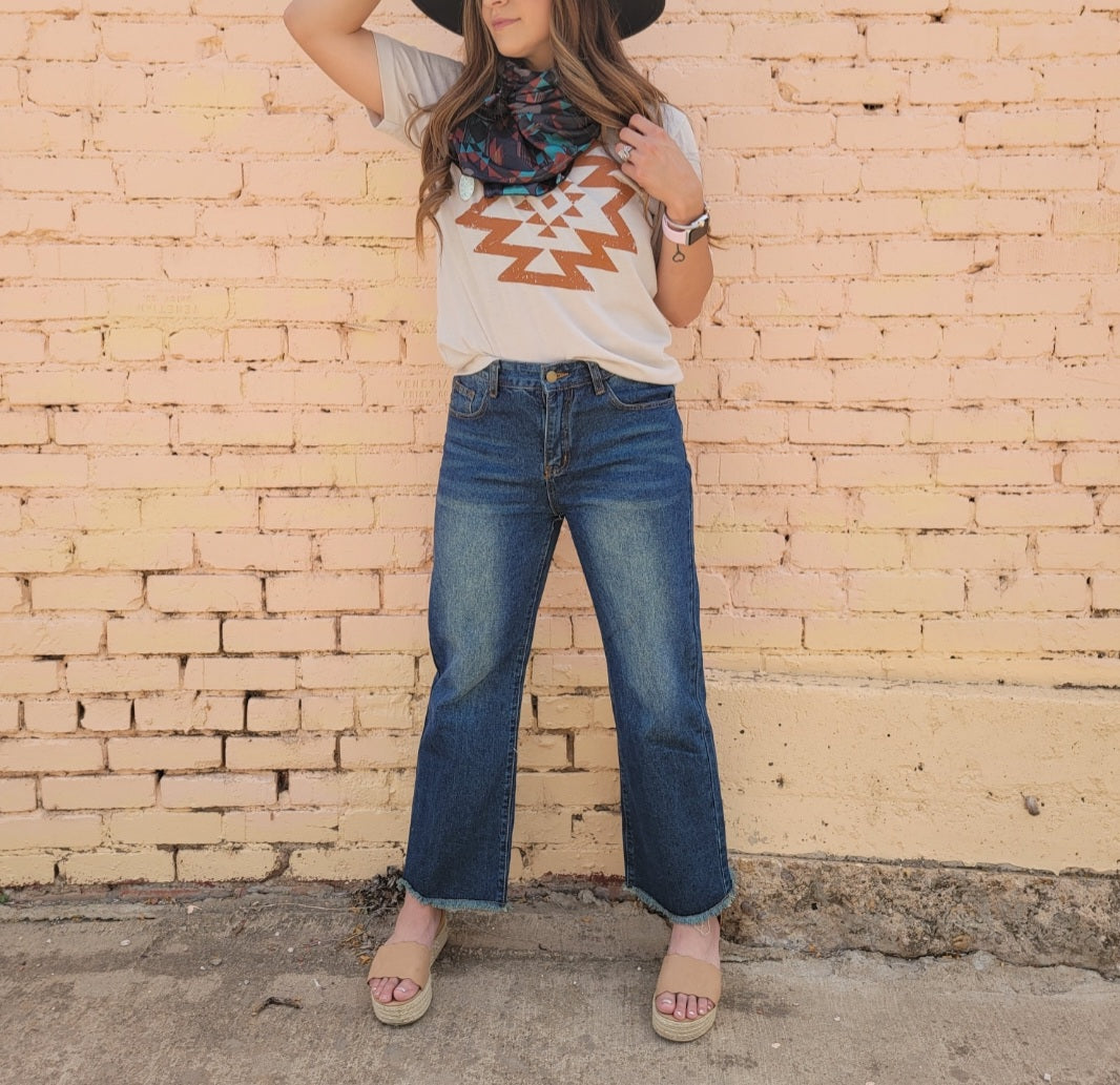 Fray Hem Wide Leg Capri Jean